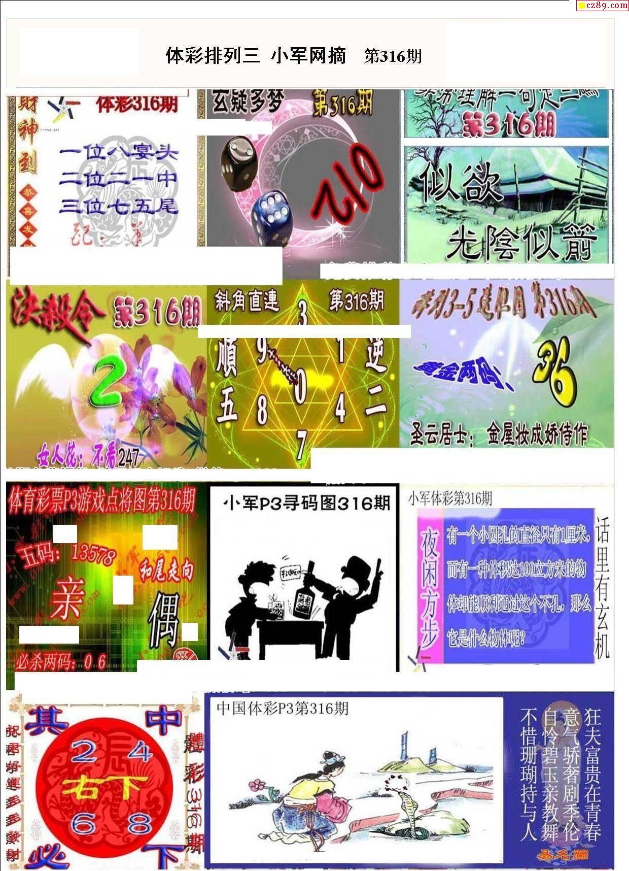 2024年316期牛彩网体彩P3画迷图谜汇总分享