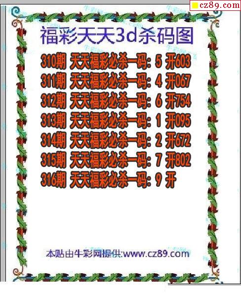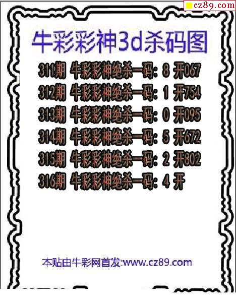 牛彩版3D预测彩报图25年330期打印版