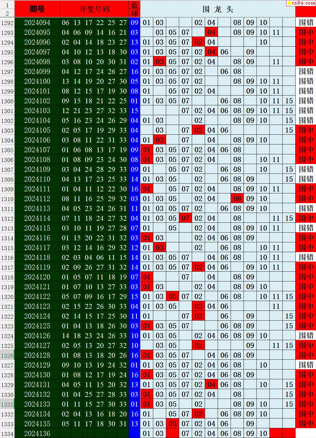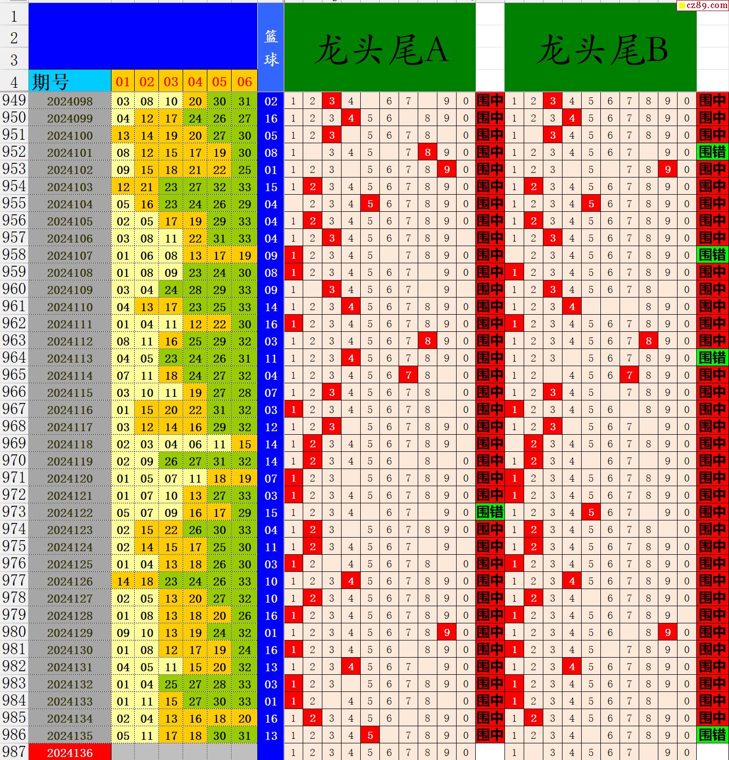 24年136期秋雨龙头凤尾走势图表