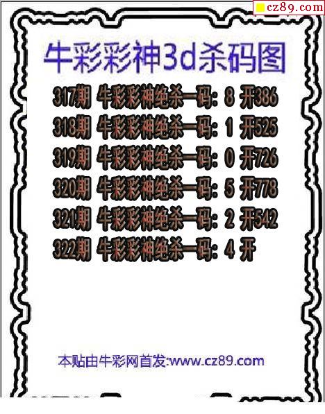 牛彩版3D预测彩报图25年332期打印版