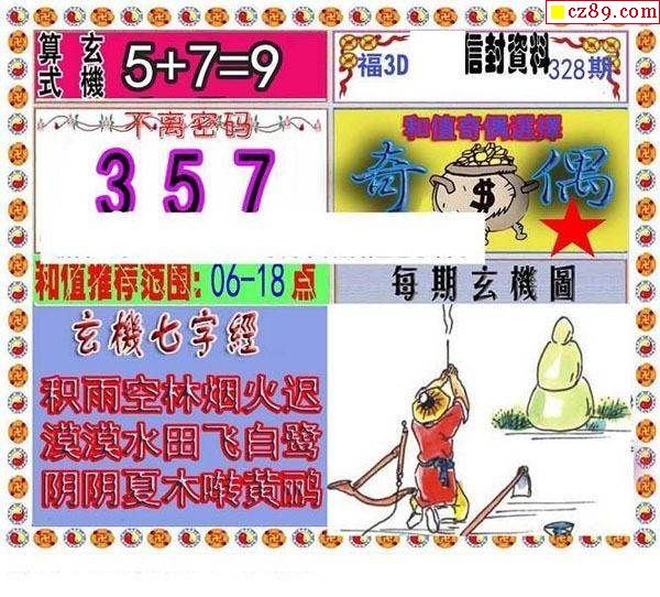 福彩3D2025331期彩赌侠一句定三码字图谜