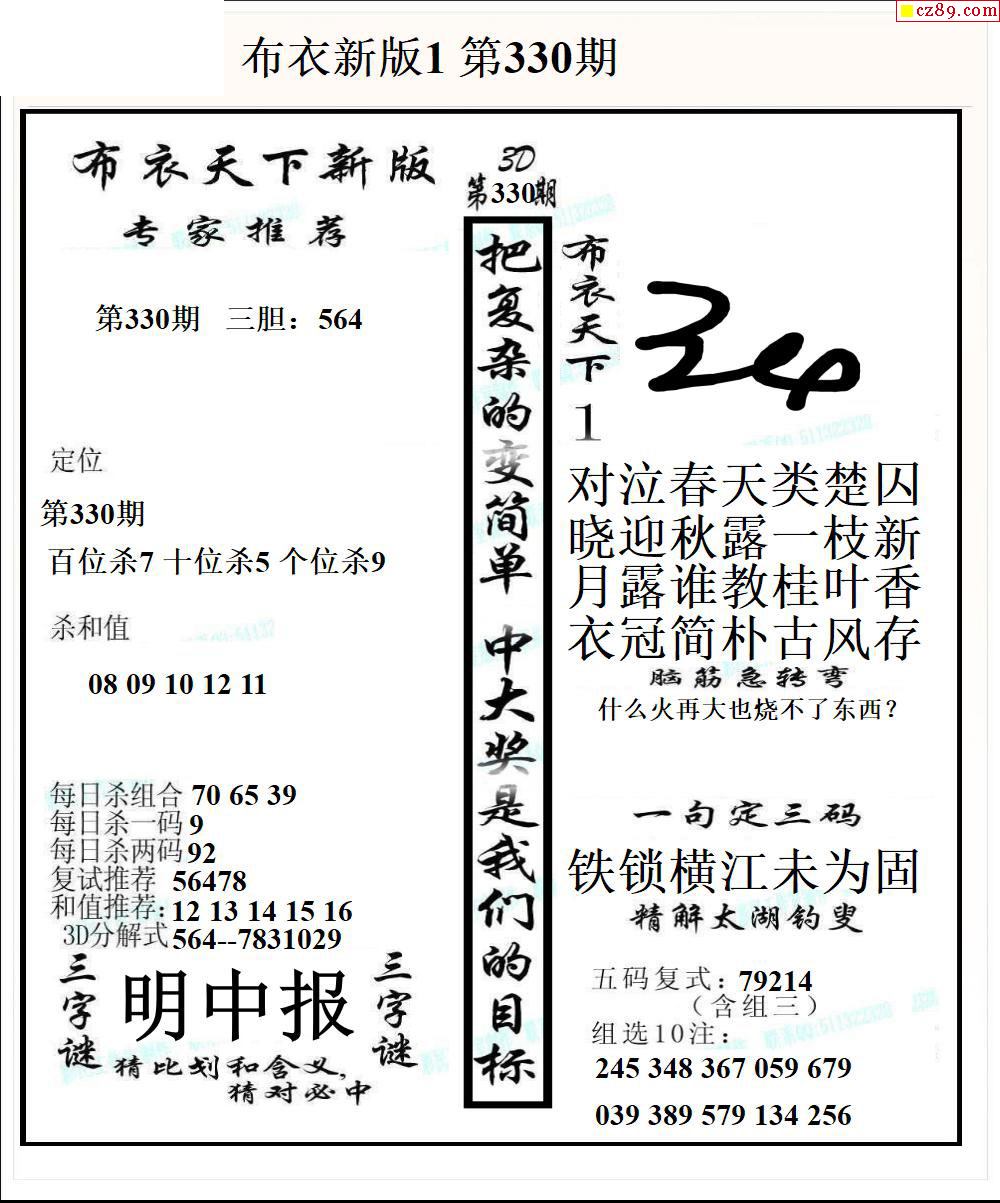 早版布衣2026019期3d图谜