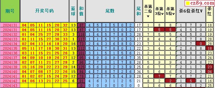 双色球144期 彩宝贝专家红蓝球杀号预测图表