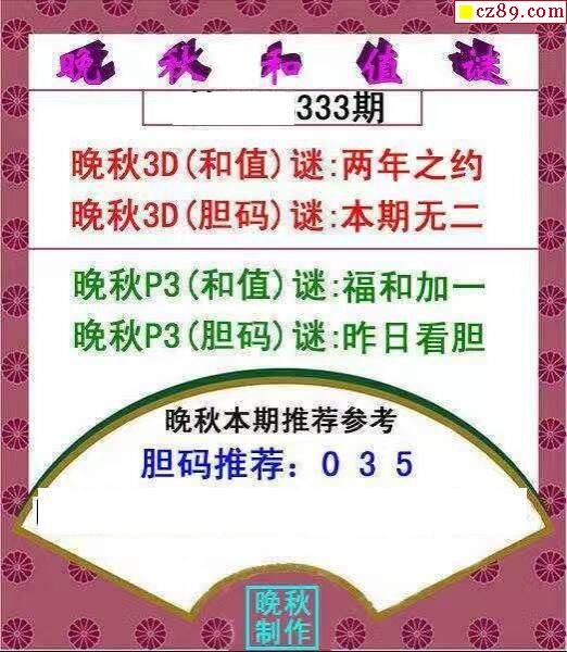 晚秋和值谜2025330期3d图谜