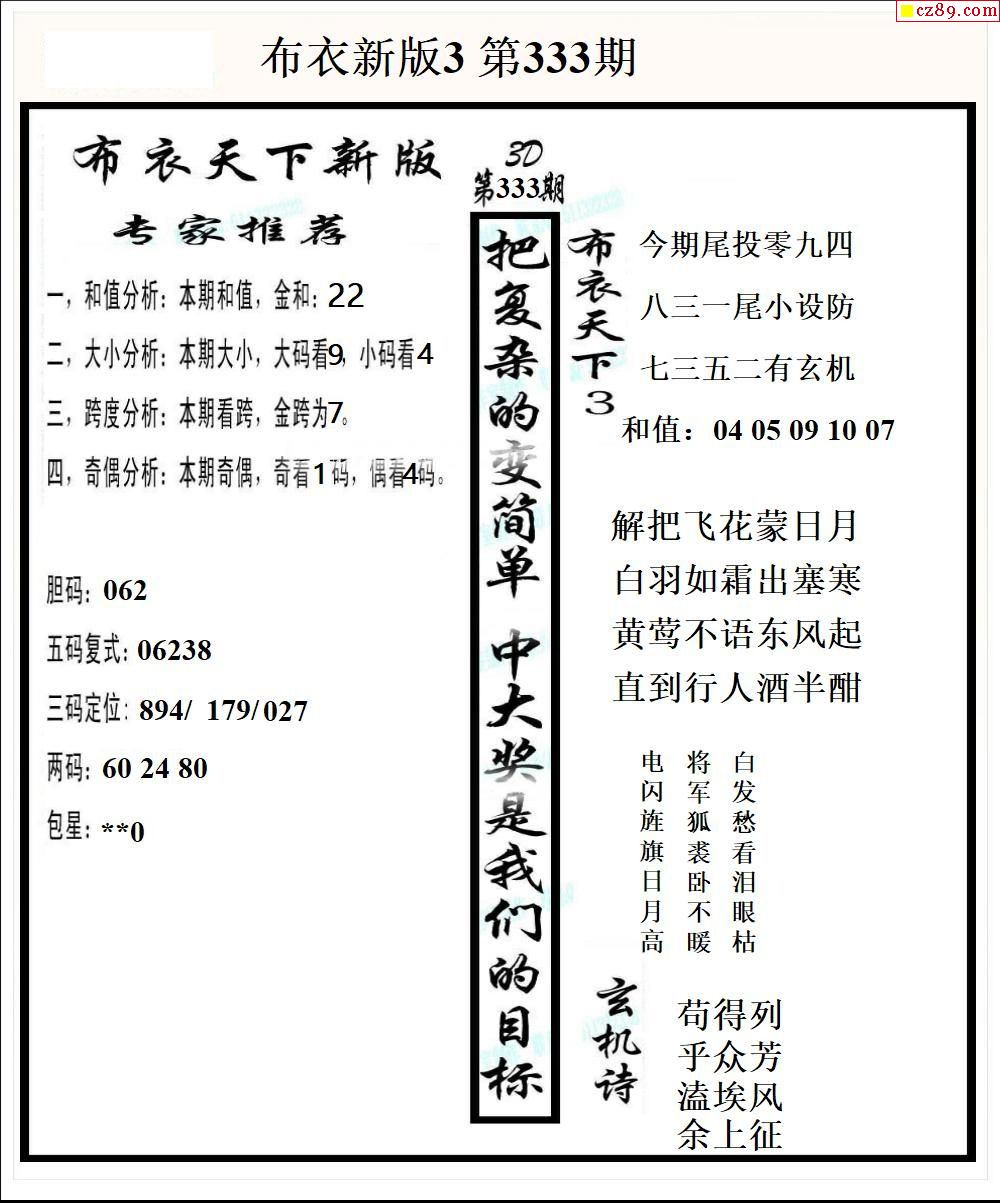2024333期3d图谜汇总(五)