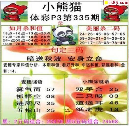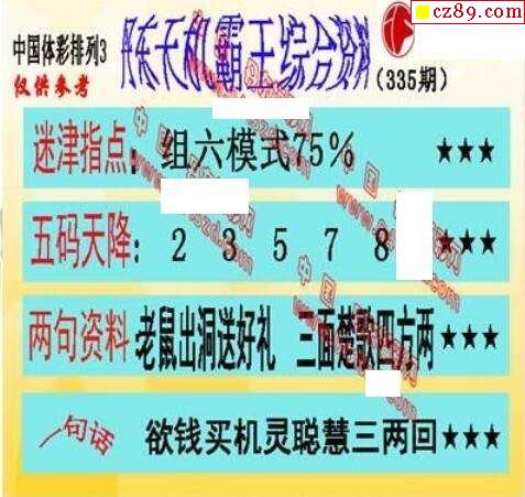 2024年335期牛彩网体彩P3画迷图谜汇总分享