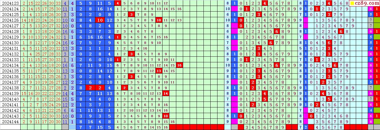 双色球2025年图迷144期 金光仙红蓝双杀图