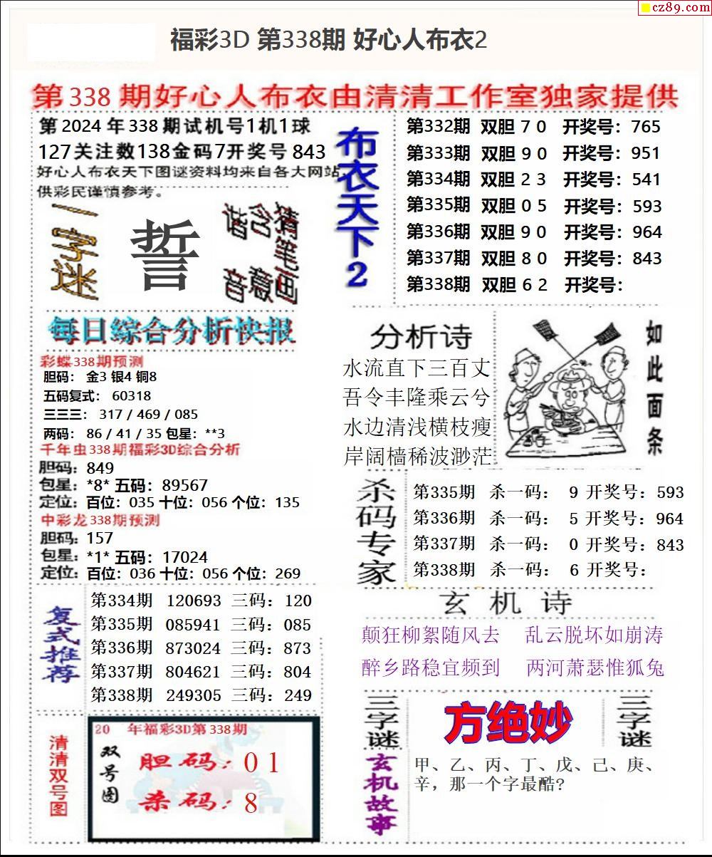 福彩3D2025330期 红尘入世锦鲤吐胆图