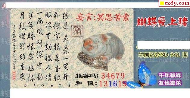 真蝴蝶世家2024341期3d图谜
