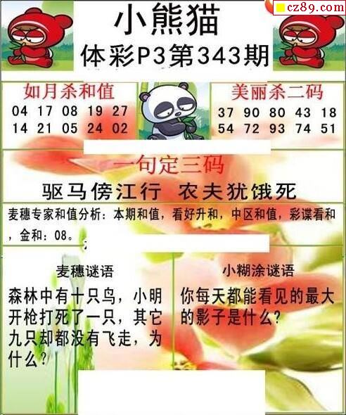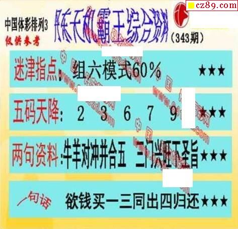 2024年343期牛彩网体彩P3画迷图谜汇总分享