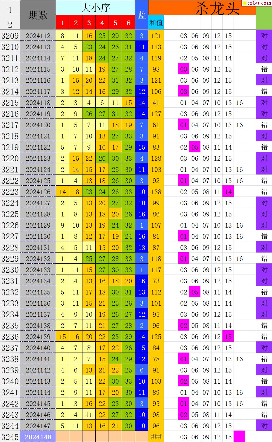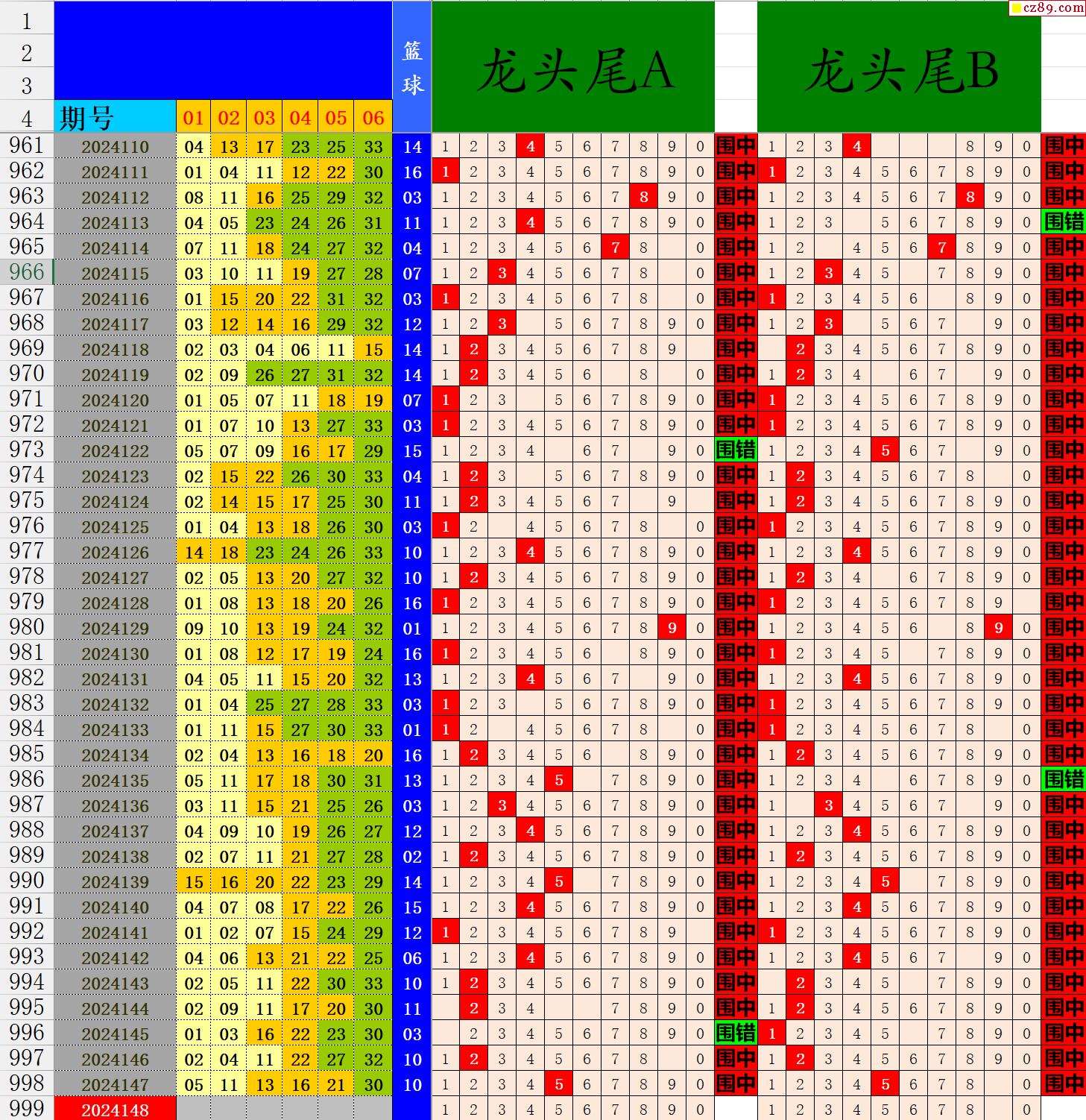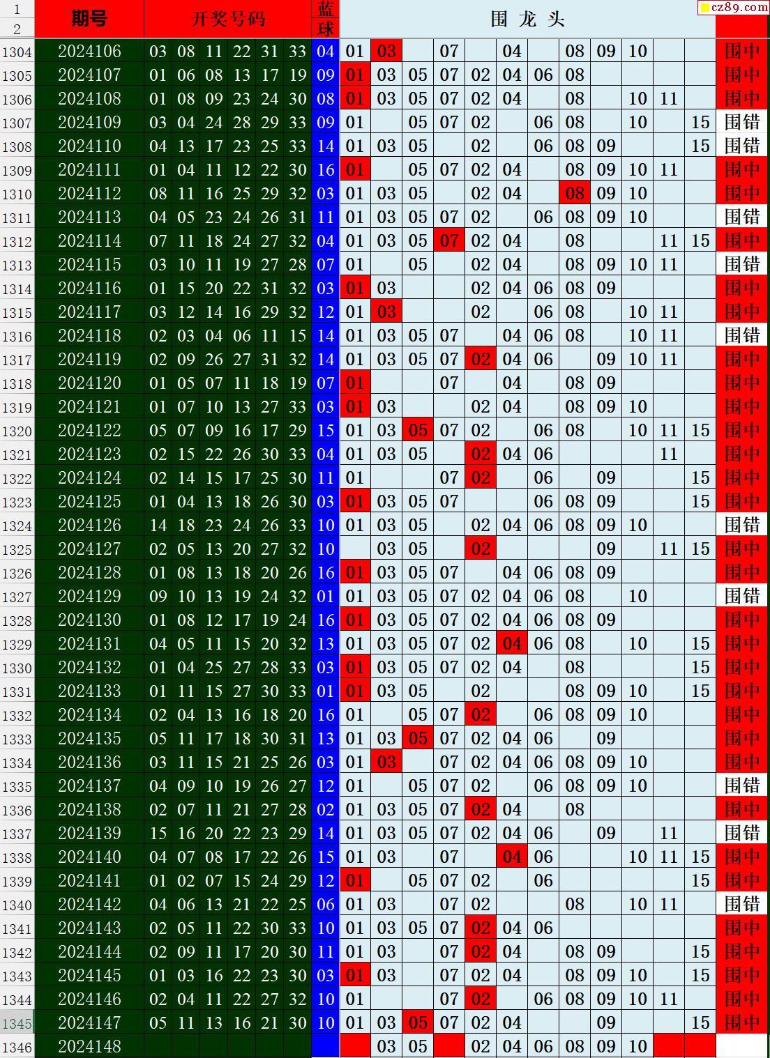 24年148期秋雨龙头凤尾走势图表