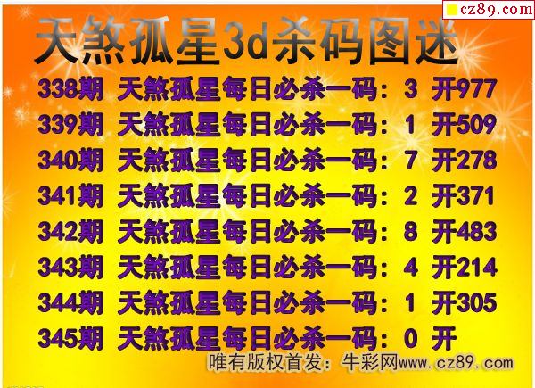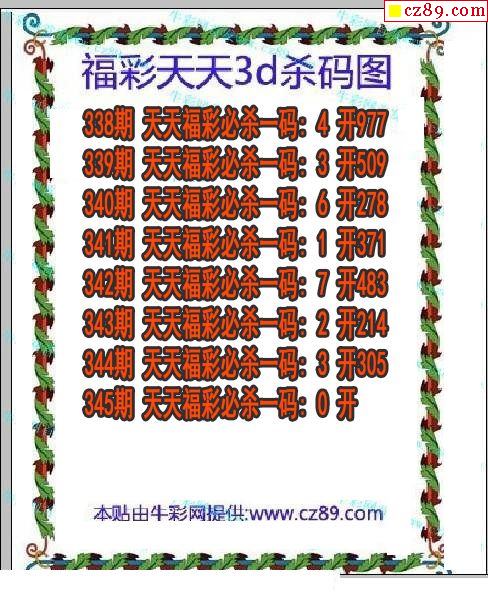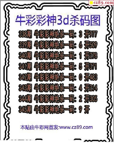 牛彩版3D预测彩报图25年330期打印版