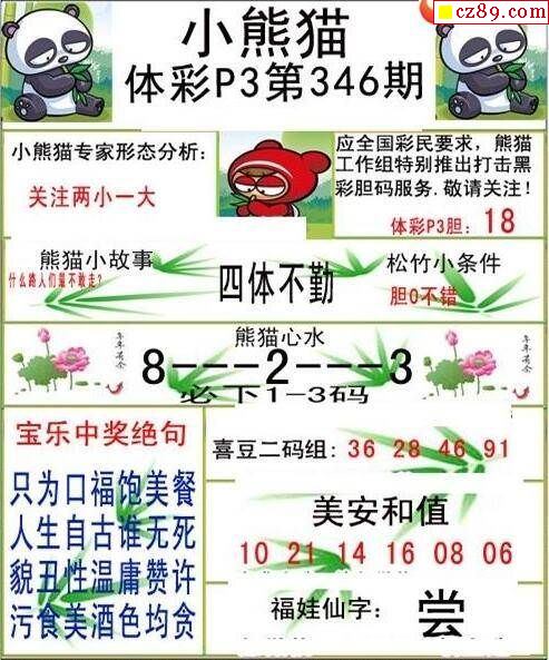 2024年346期牛彩网体彩P3画迷图谜汇总分享