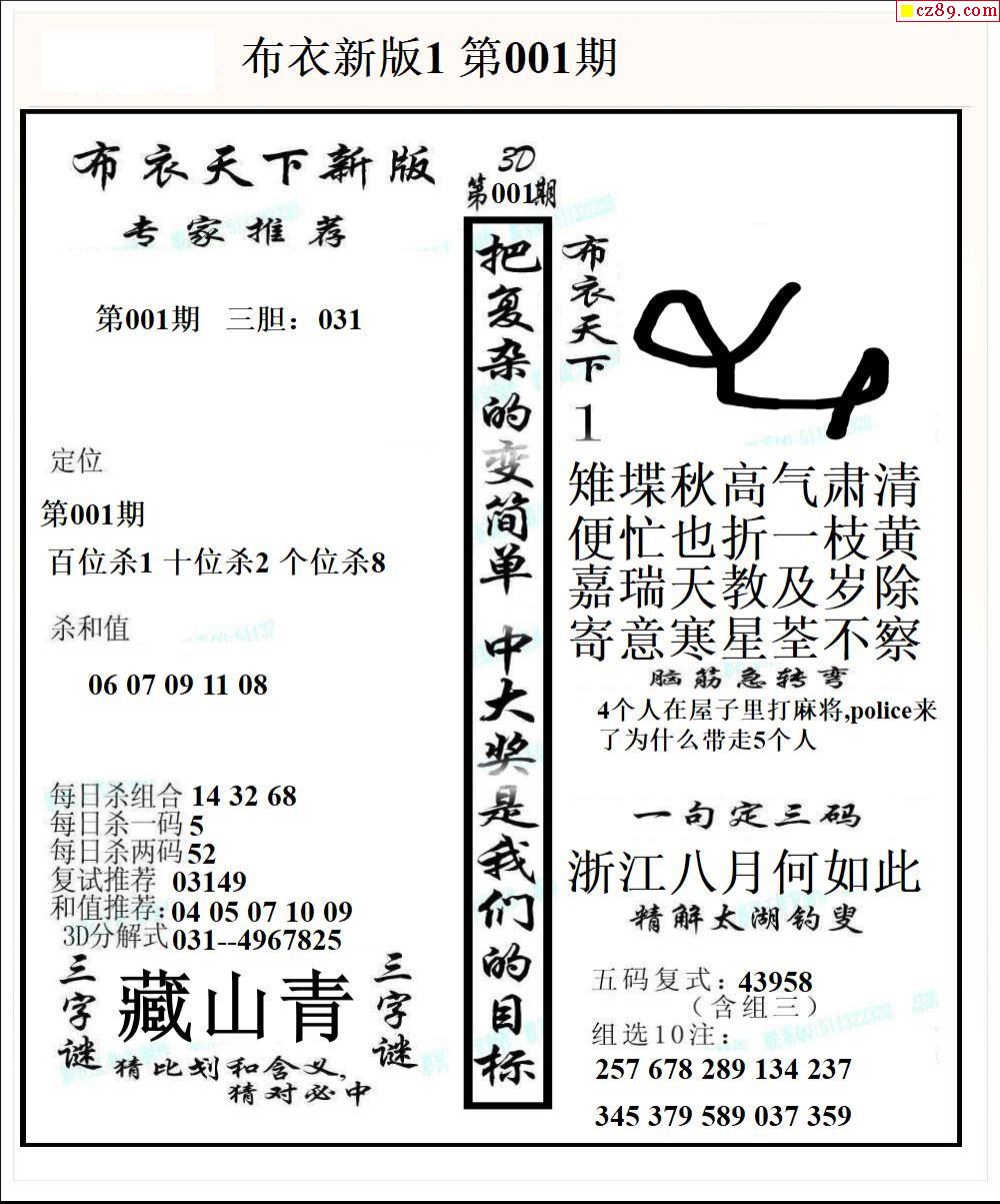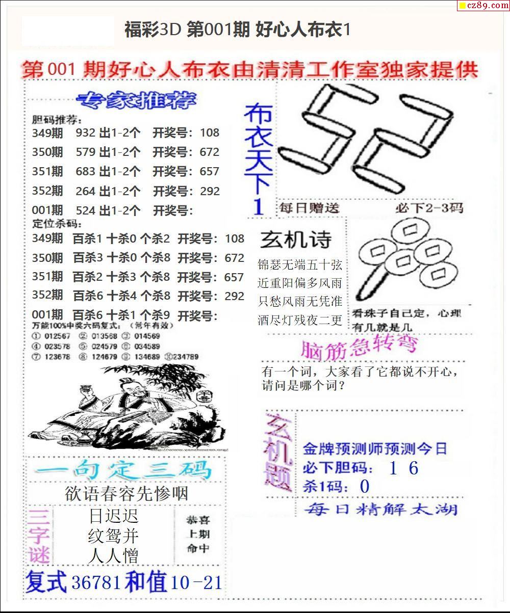 福彩3D2025329期 祁连牧哥百财纳福胆码图谜推荐