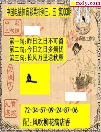 2025年003期牛彩网体彩P3画迷图谜汇总分享