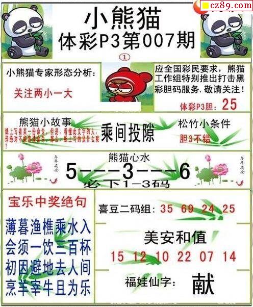体彩P325年图迷334期 功夫熊猫内幕中奖图