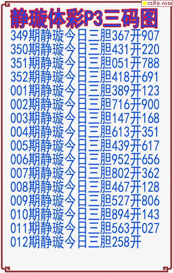 2025年012期体彩P3胆码杀码原创图总汇