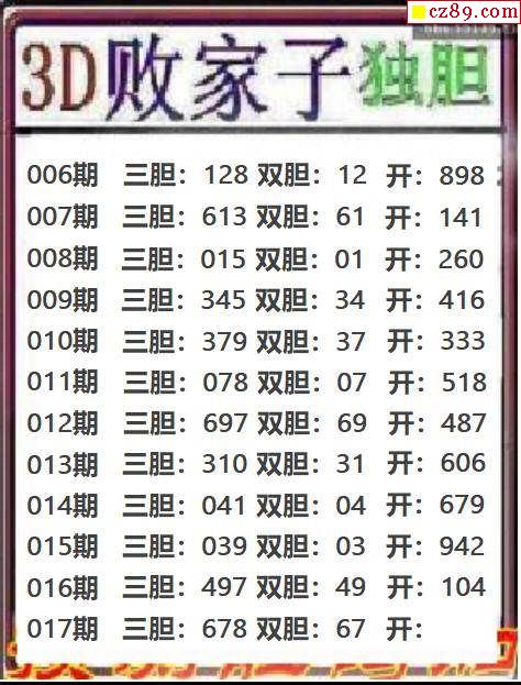 牛彩版3D预测彩报图25年351期打印版