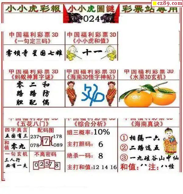 牛彩版3D字谜彩报图25年330期打印版
