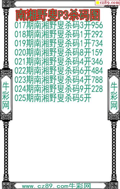 25年339期公孙梦体育彩票P3杀码图