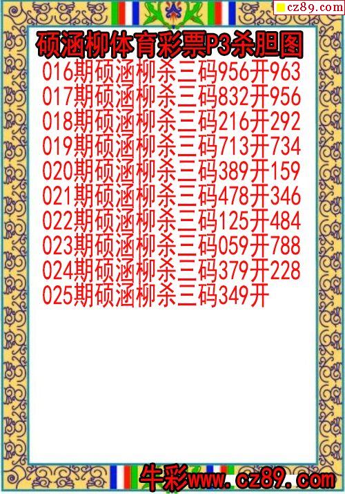 2025年339期牛彩网体彩P3画迷图谜汇总分享