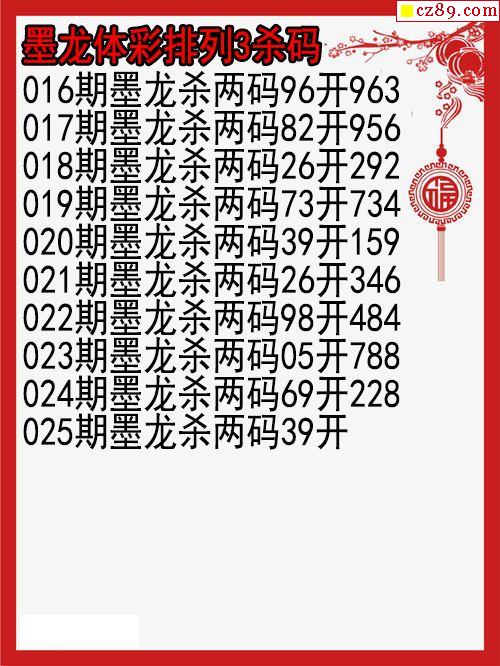 25年339期墨龙体彩排列3杀码图