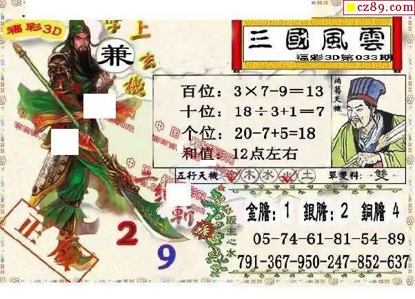 福彩3D2025330期 万家图谜三国胆拖杀图