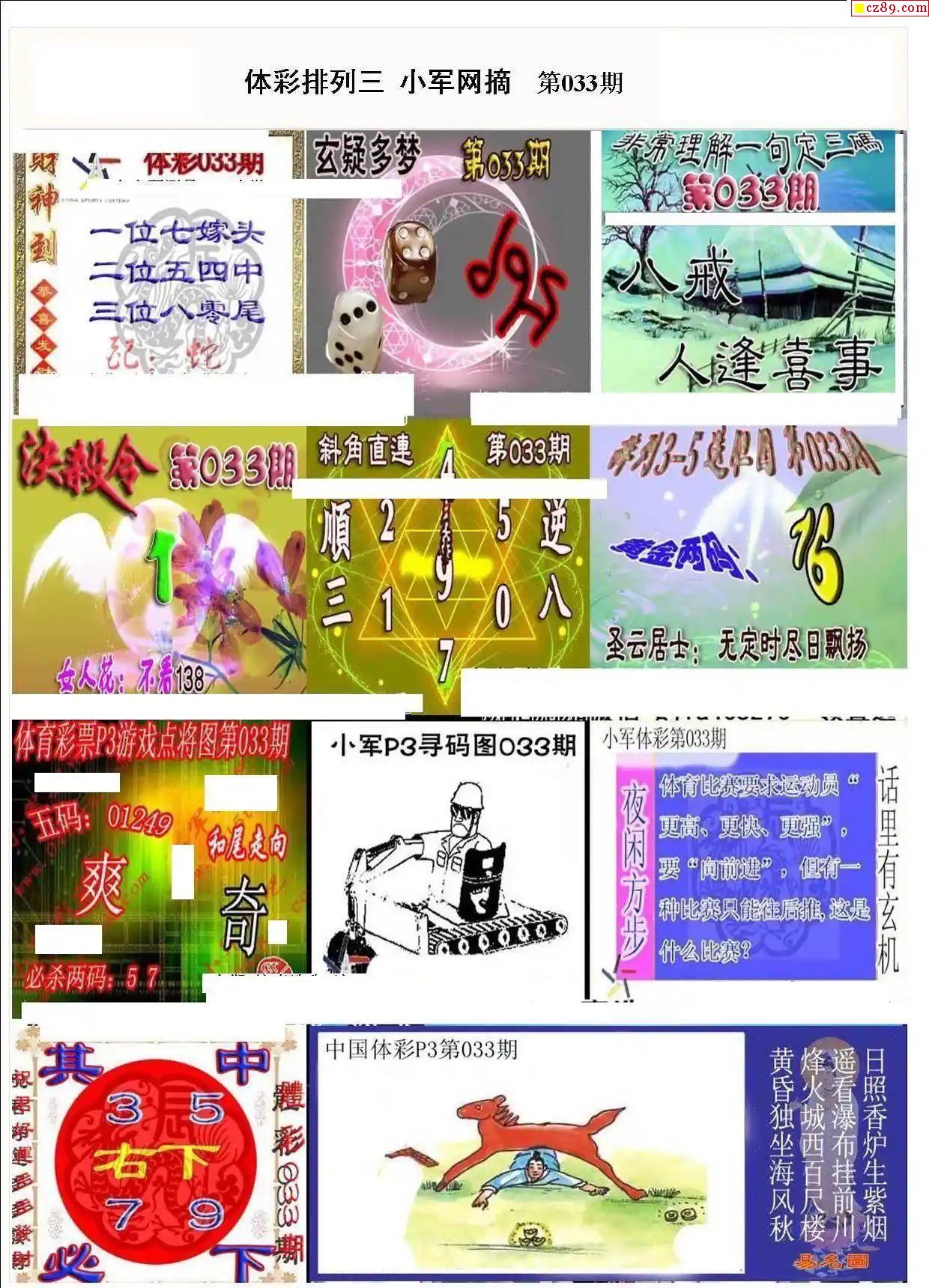 2025年033期牛彩网体彩P3画迷图谜汇总分享