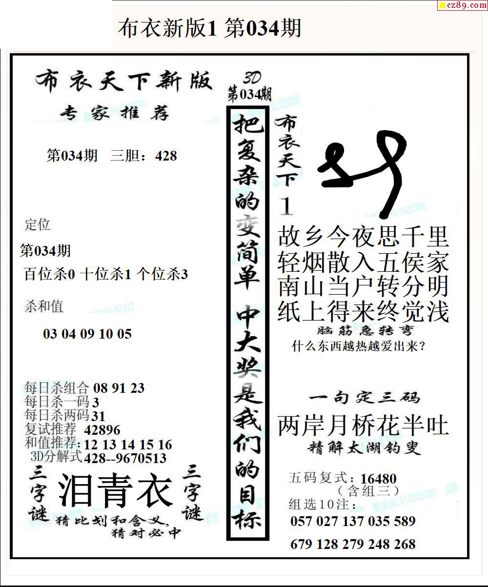 2025034期3d图谜汇总(五)