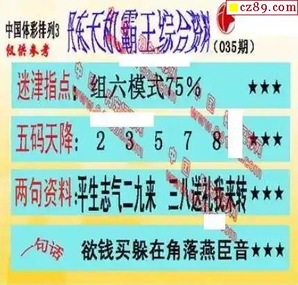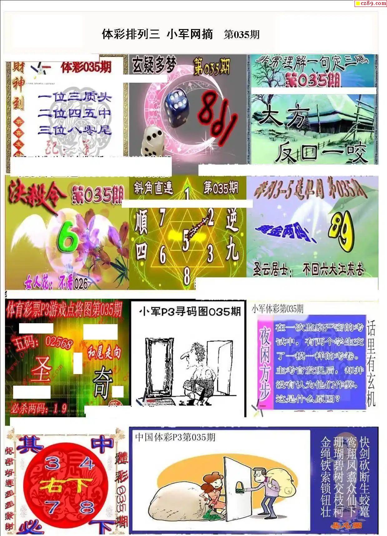 2025年035期牛彩网体彩P3画迷图谜汇总分享