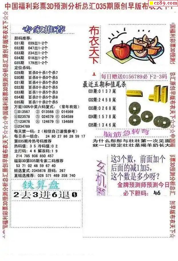 牛彩版3D字谜彩报图26年023期打印版