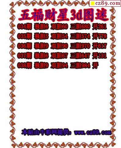 福彩3D2025332期 祁连牧哥百财纳福胆码图谜推荐