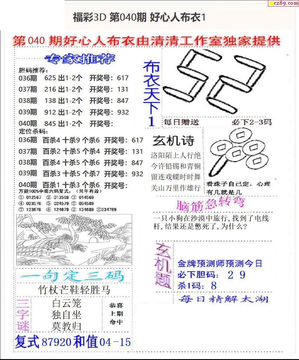 2025040期3d字谜图谜总汇