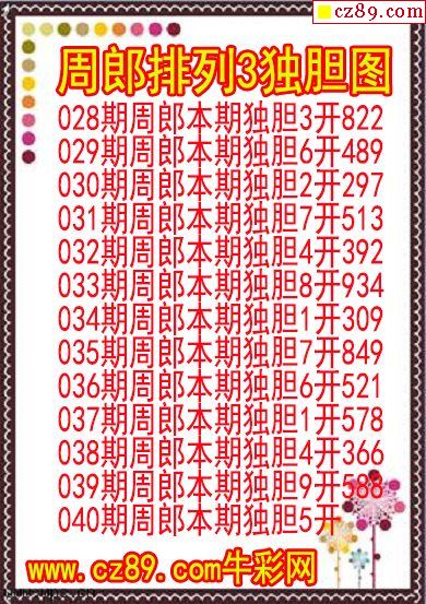 25年341期周郎排列3独胆图