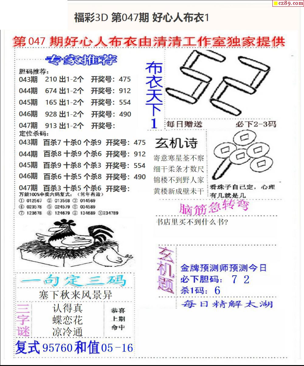 牛彩版3D字谜彩报图26年005期打印版