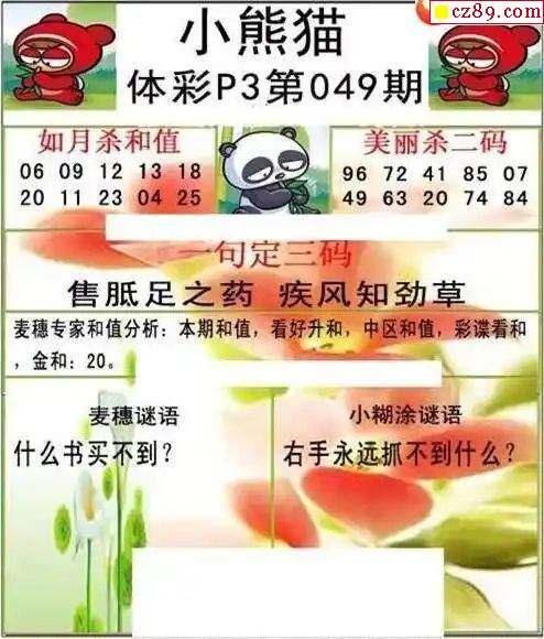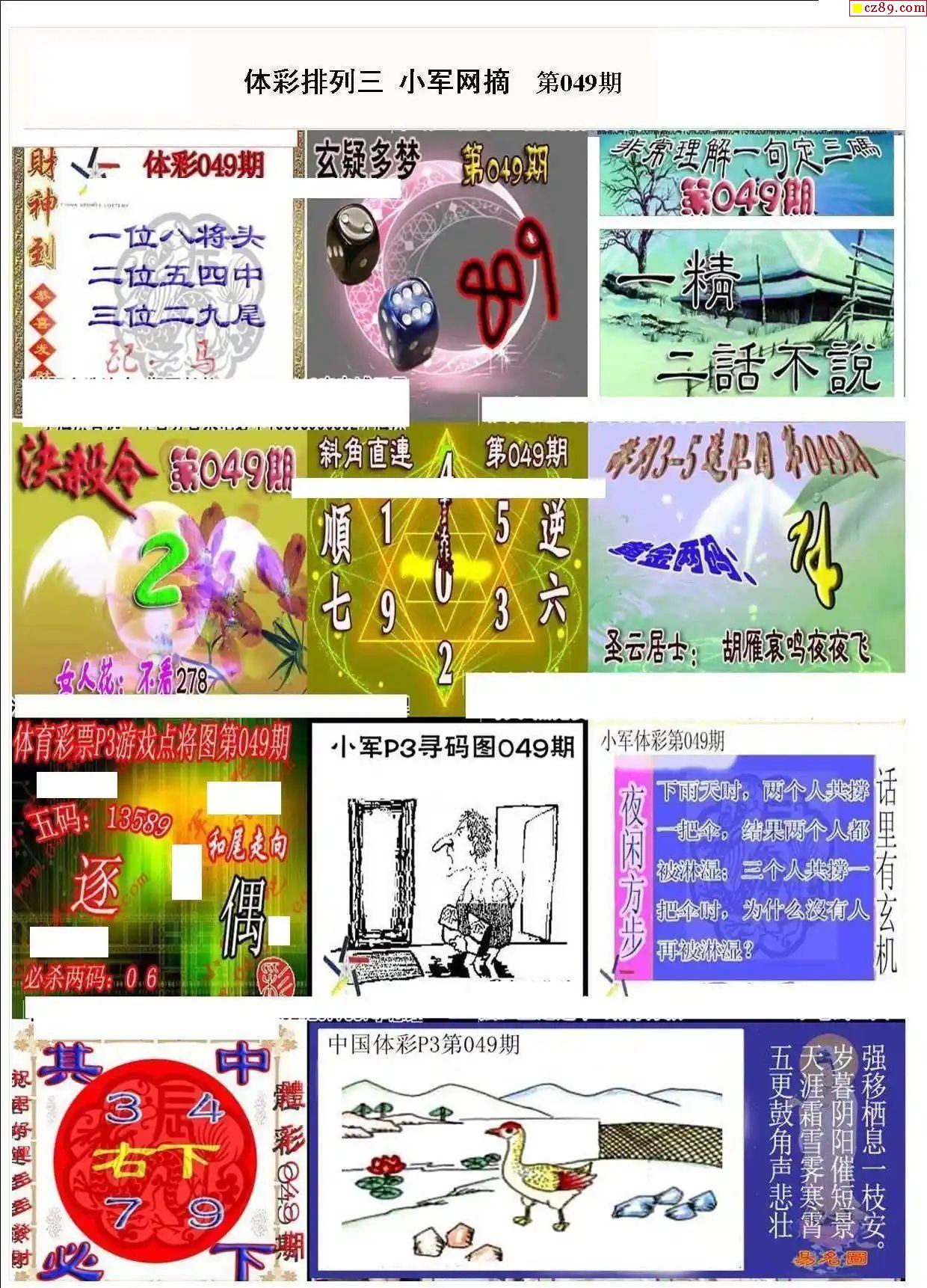2025年049期牛彩网体彩P3画迷图谜汇总分享