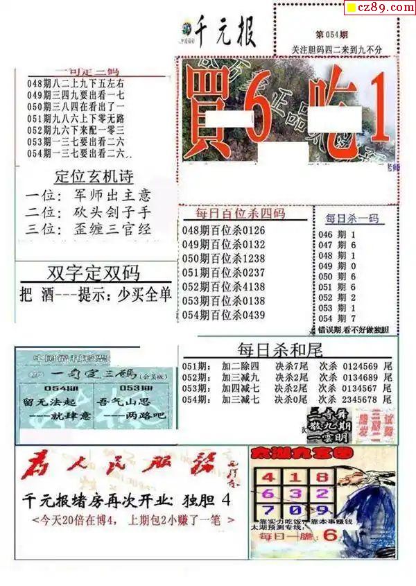 牛彩版3D字谜彩报图25年336期打印版