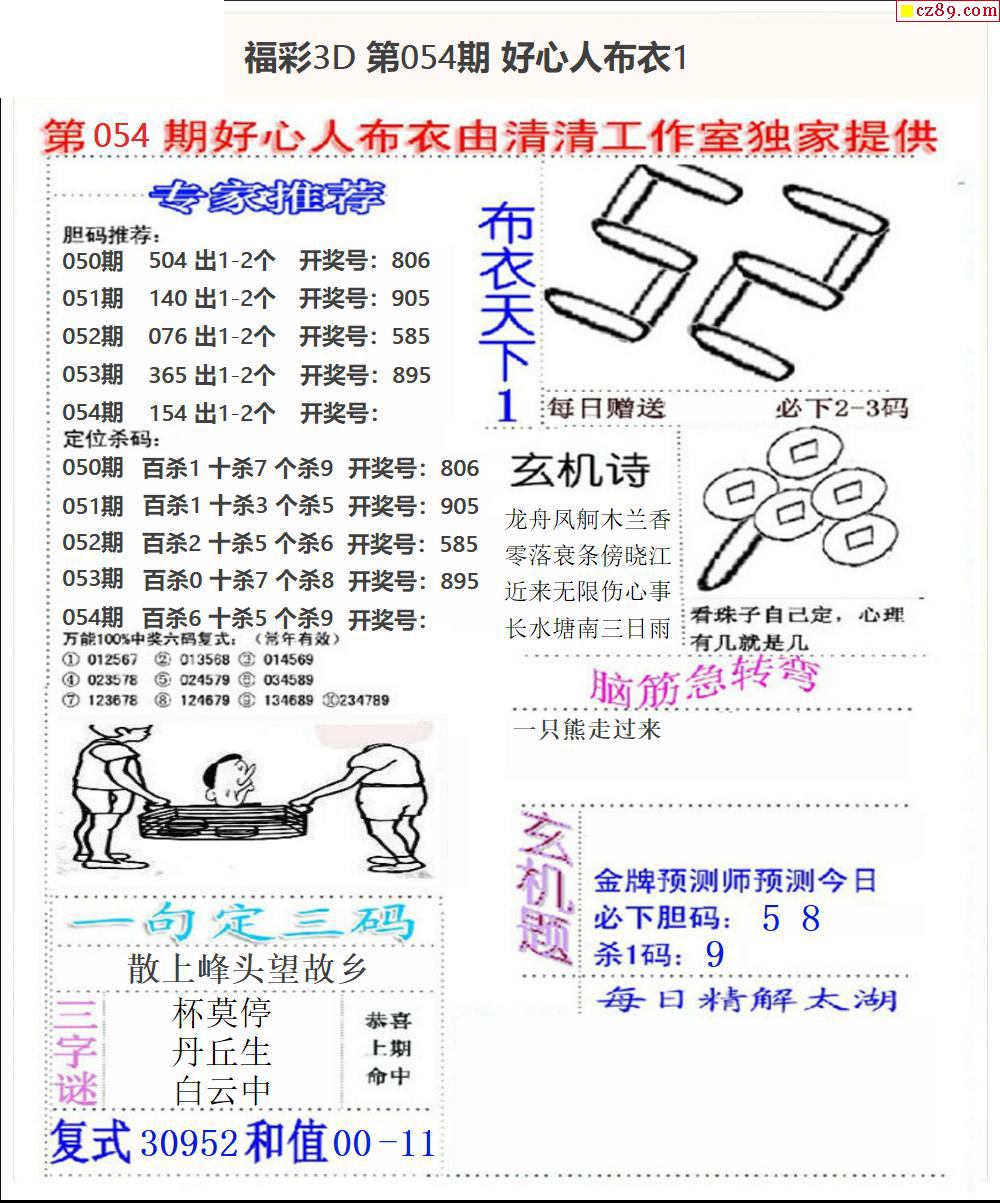 2025331期解太湖3d字图迷汇总报