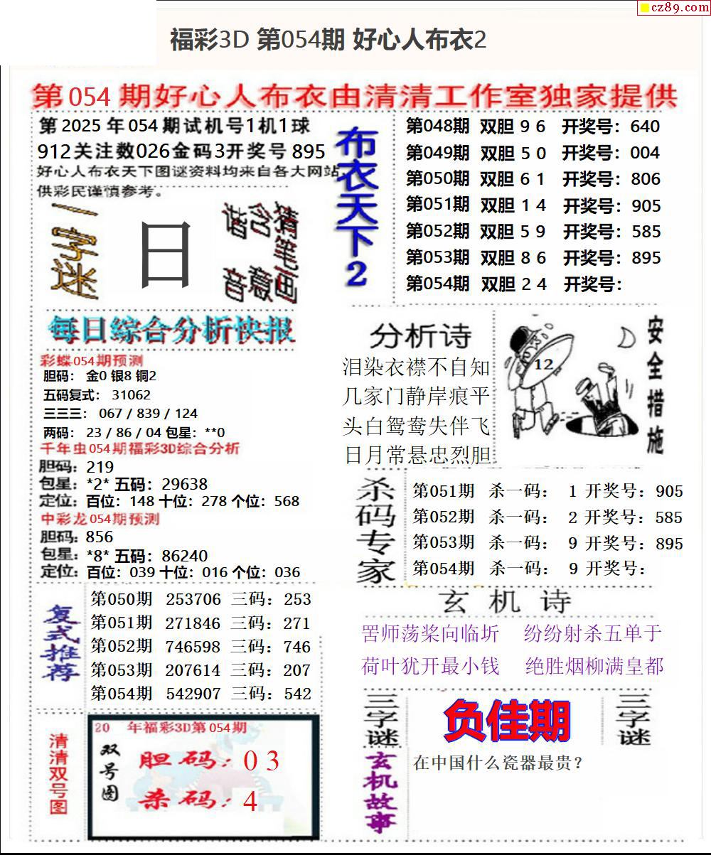 牛彩版3D字谜彩报图25年331期打印版