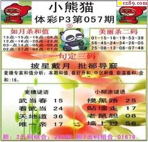 2025年057期牛彩网体彩P3画迷图谜汇总分享