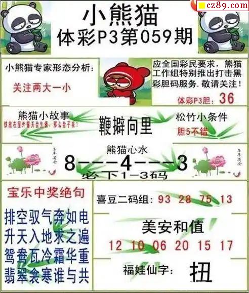 小熊猫2025335期体彩P3图谜
