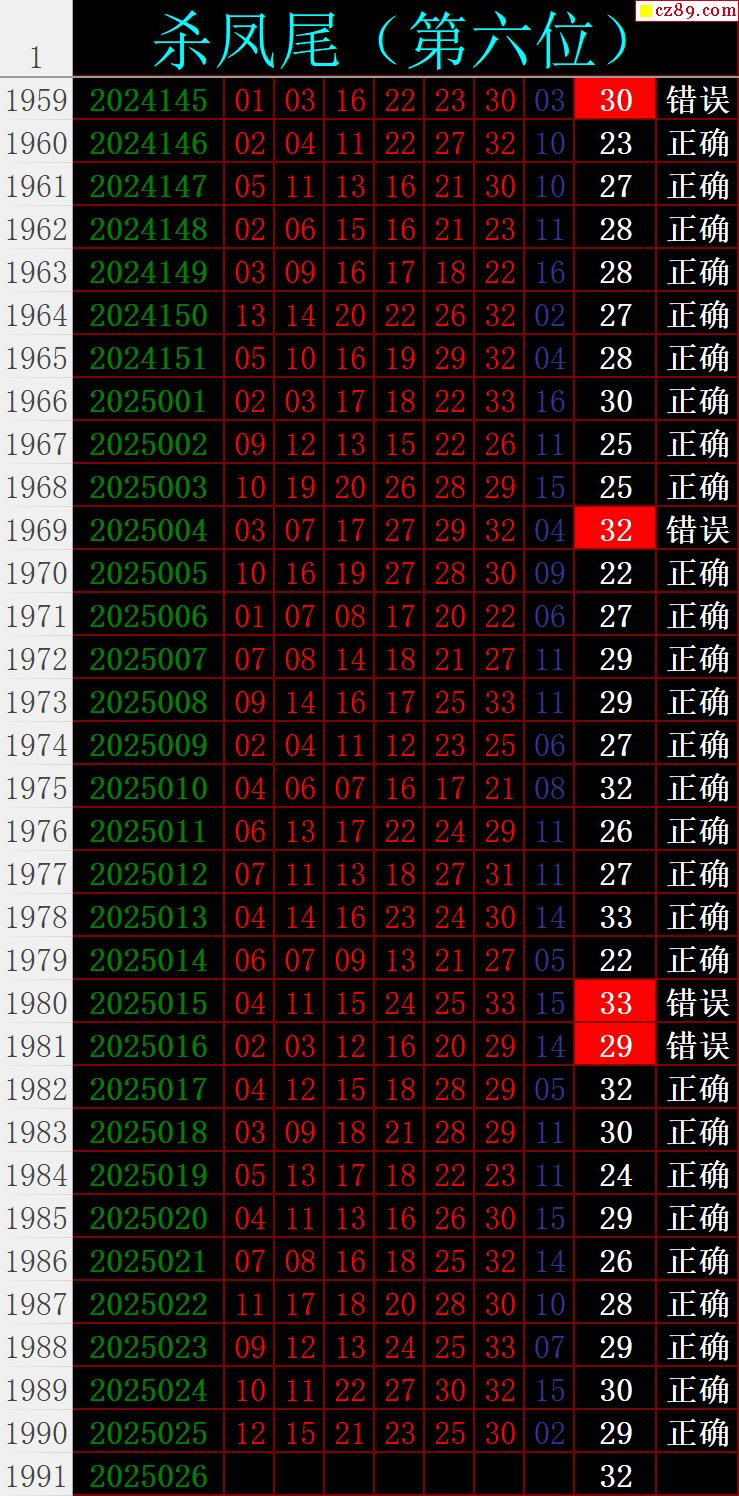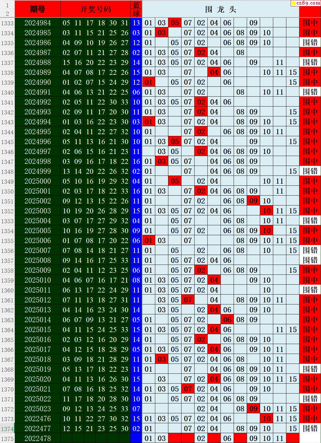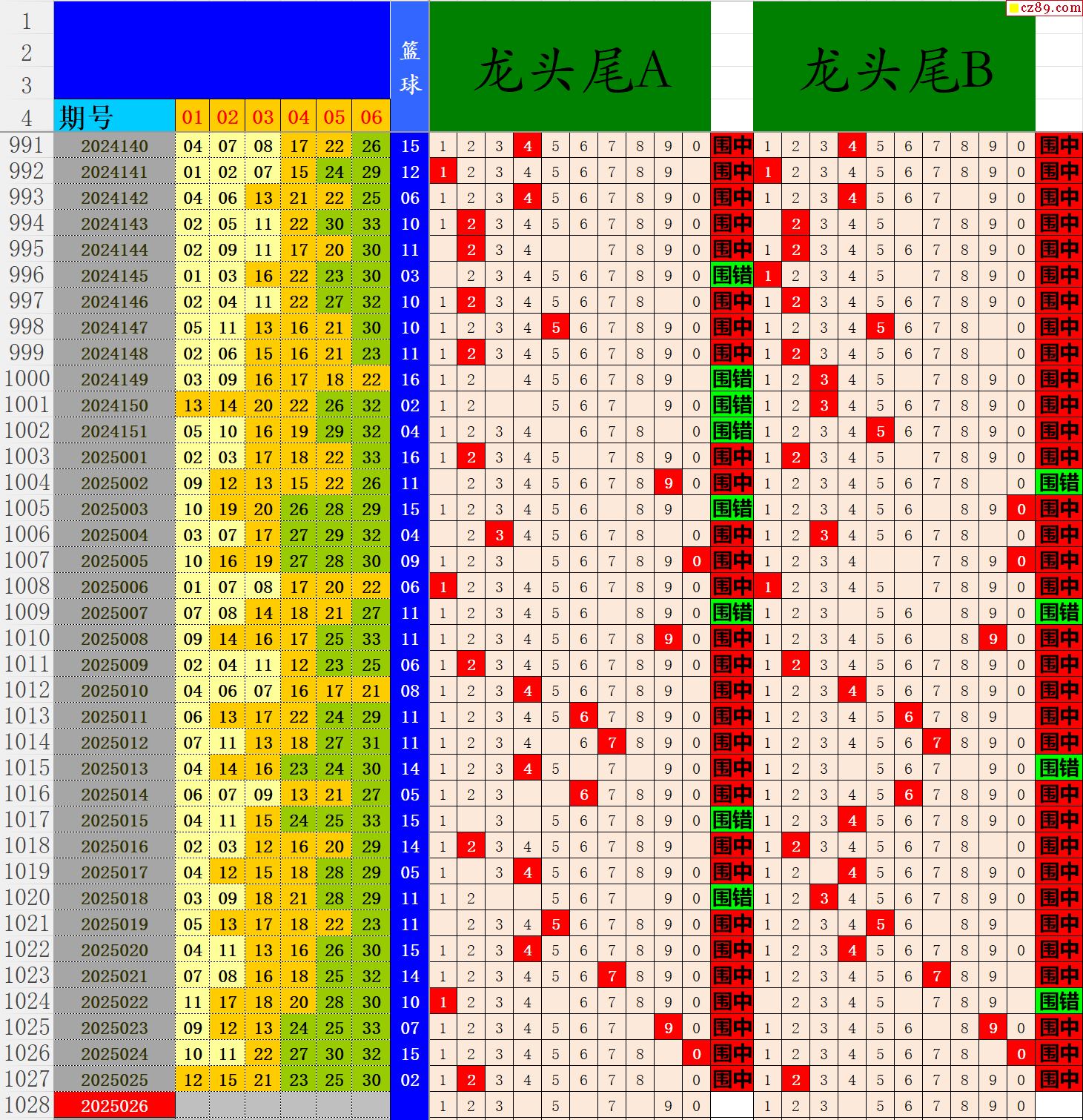 25年026期秋雨龙头凤尾走势图表