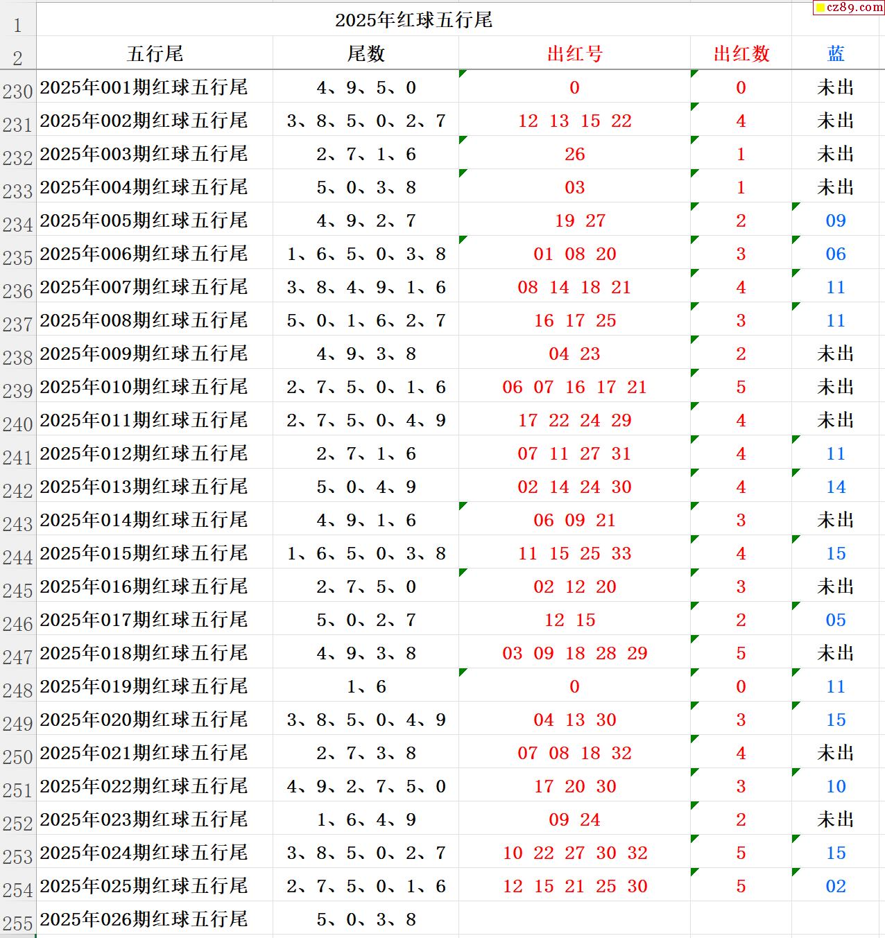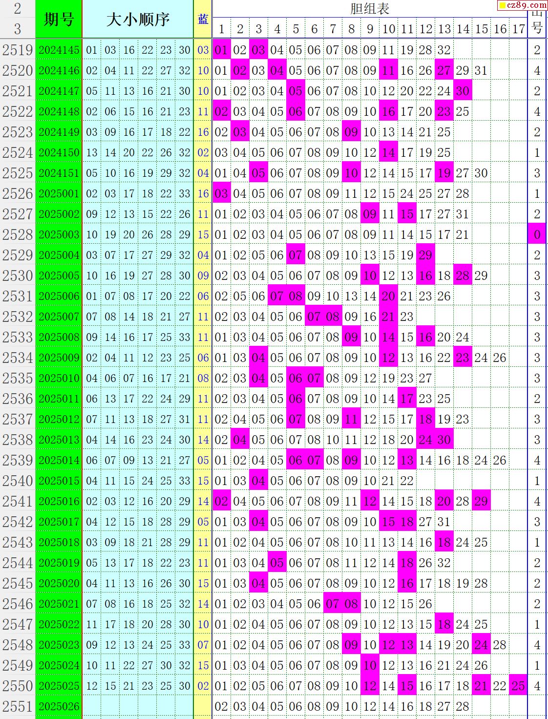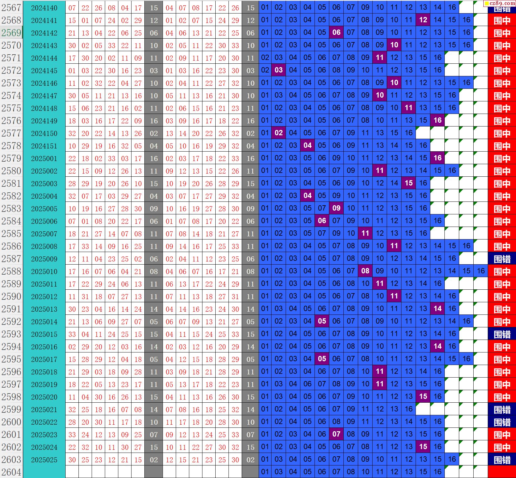 25年026期秋雨龙头凤尾走势图表