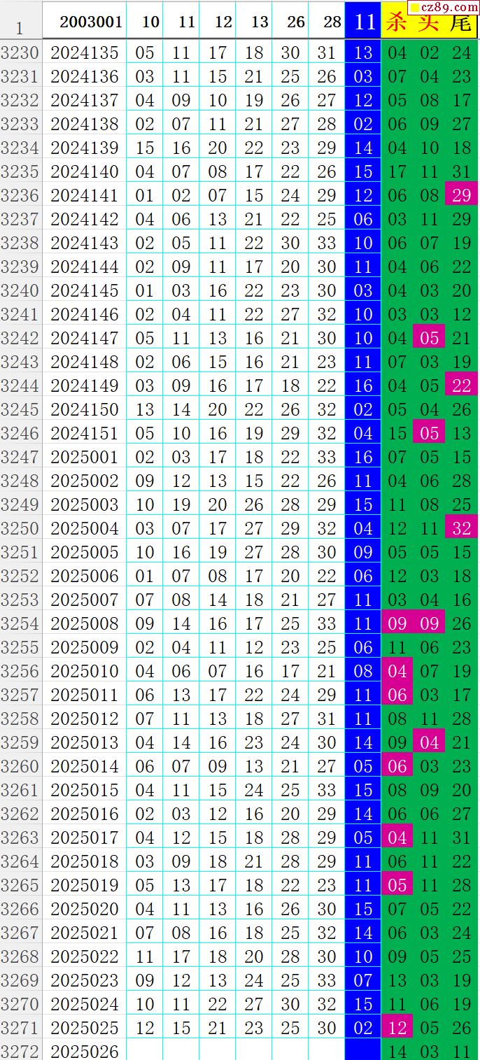 26年011期秋雨龙头凤尾走势图表