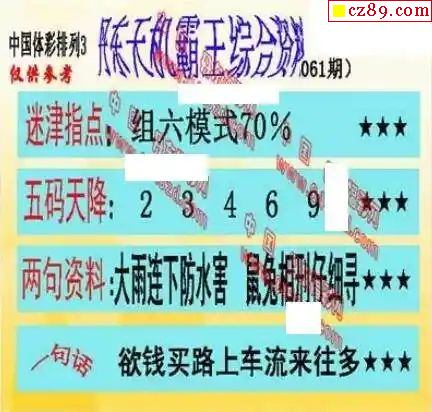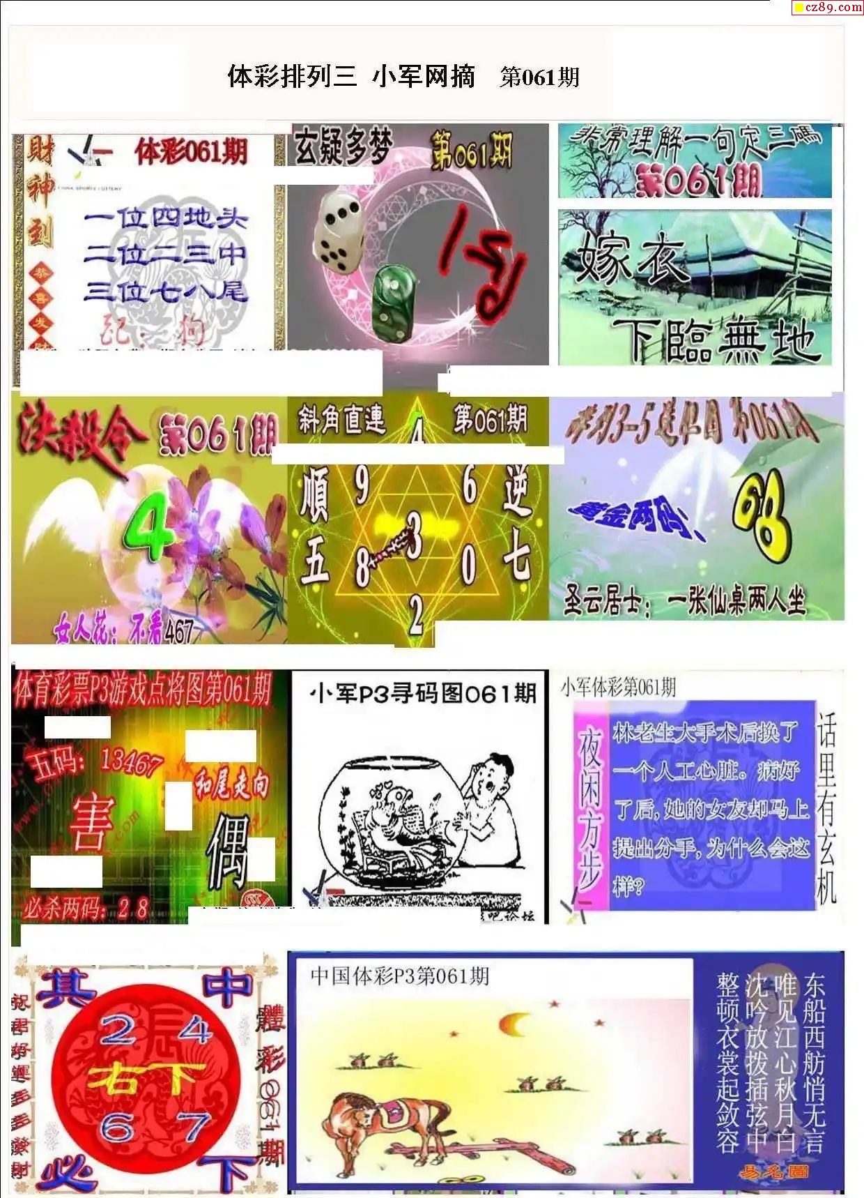 2025年061期牛彩网体彩P3画迷图谜汇总分享