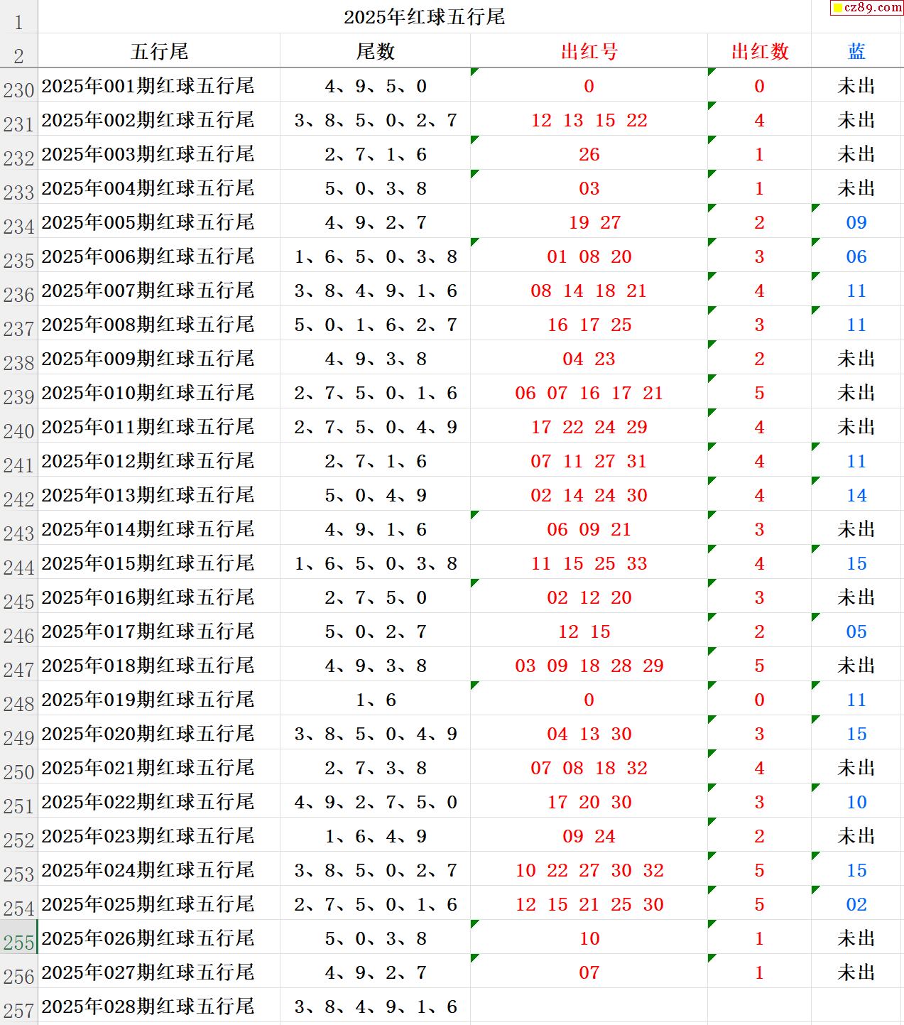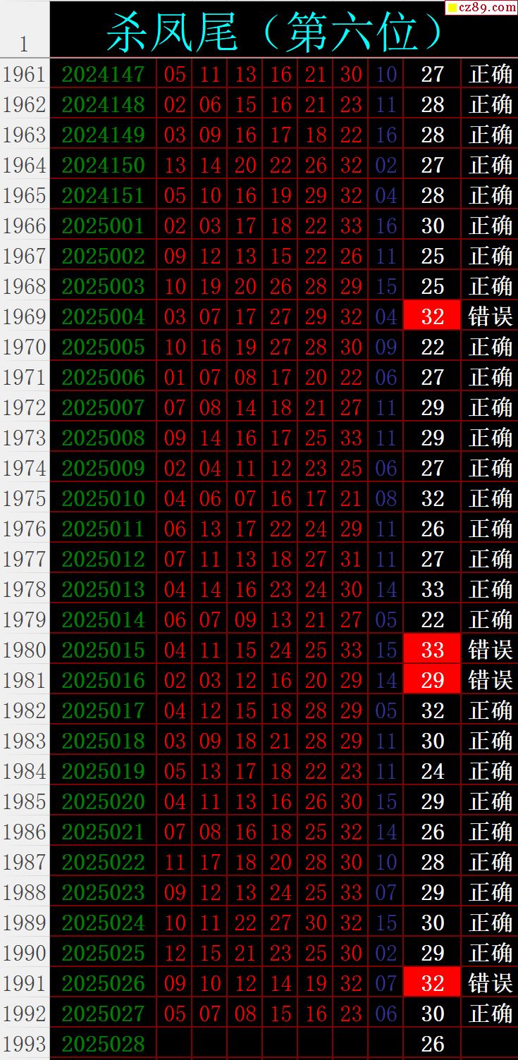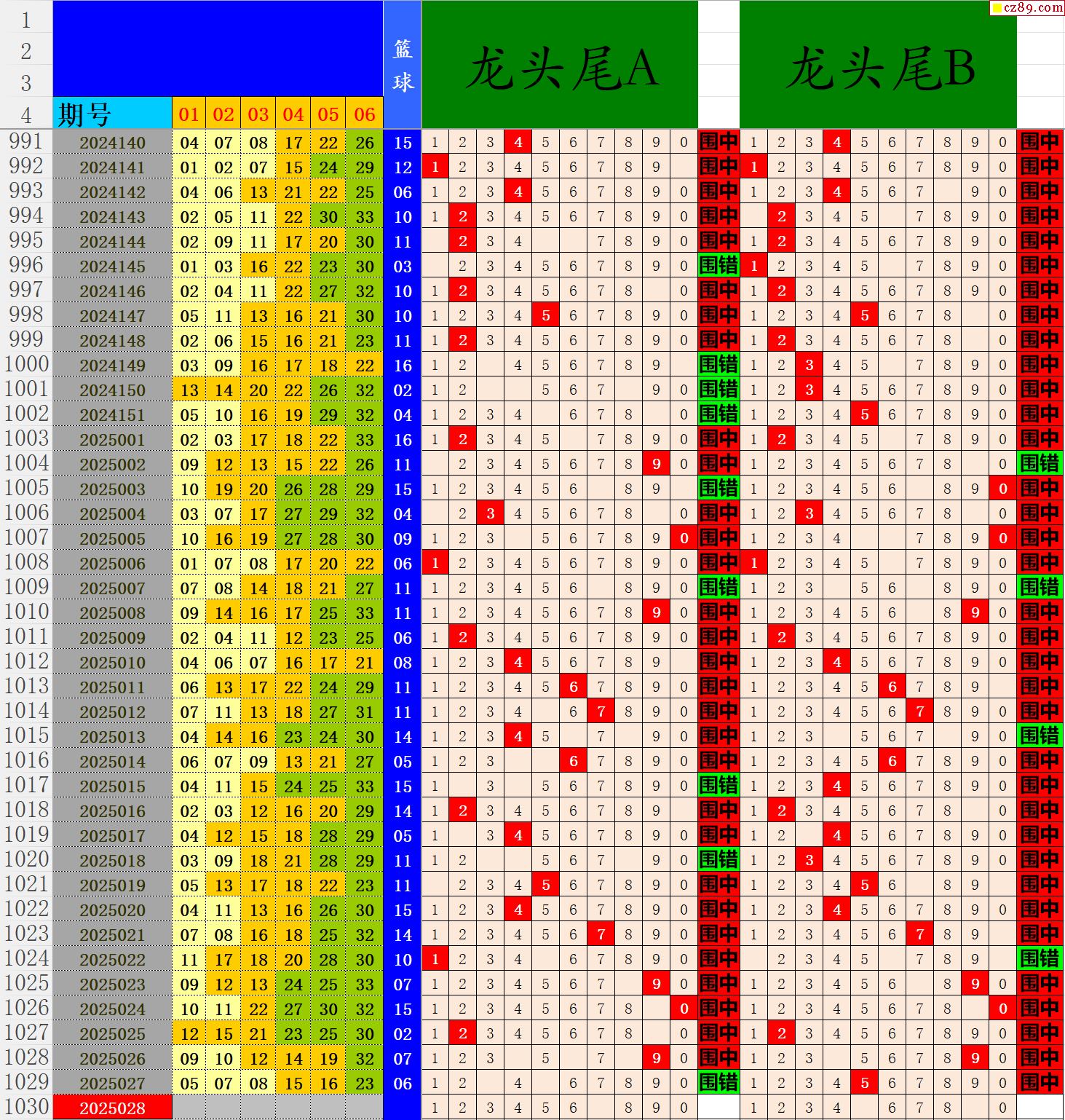 25年028期秋雨龙头凤尾走势图表