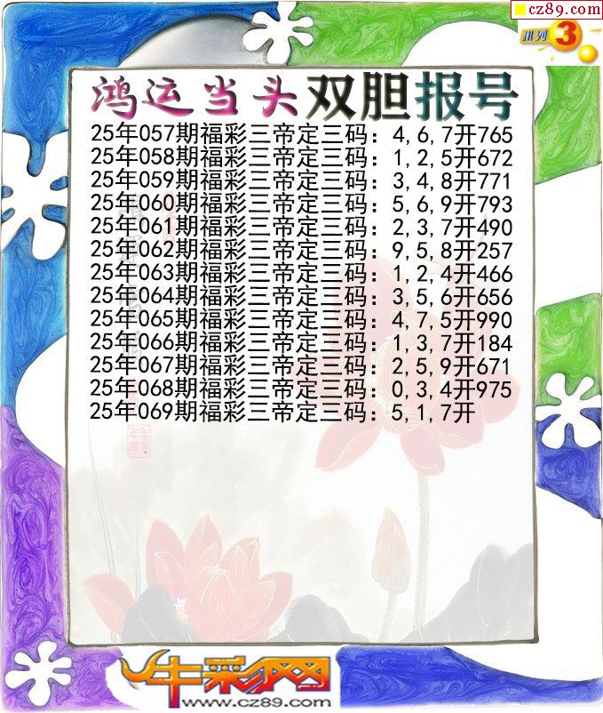 2025年329期牛彩网体彩P3画迷图谜汇总分享