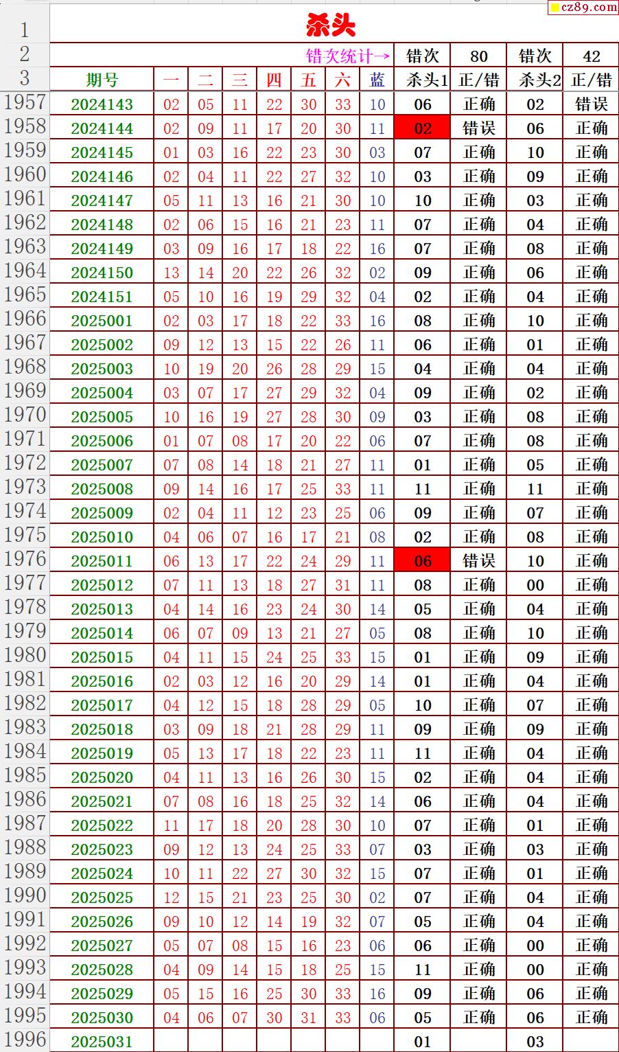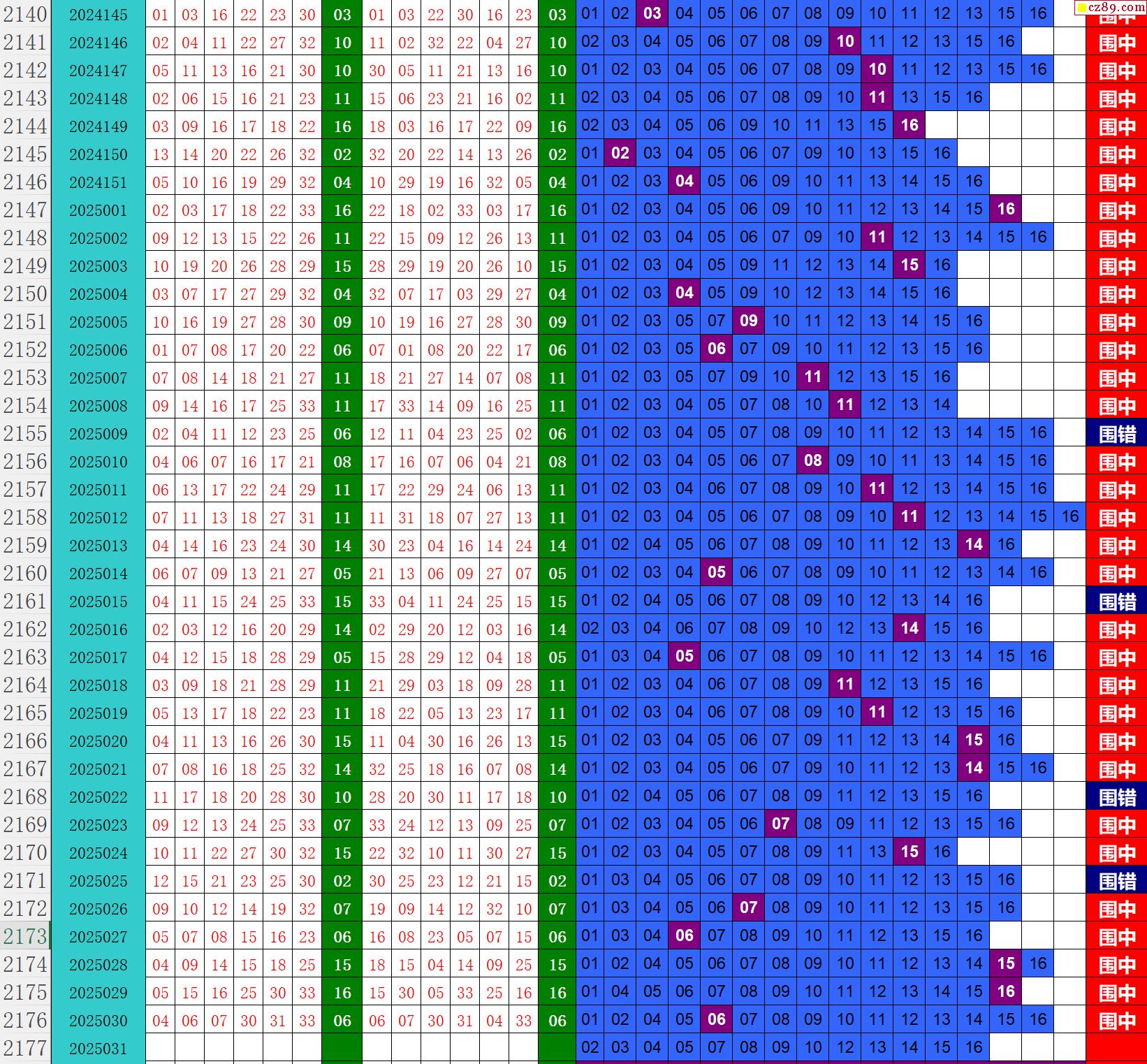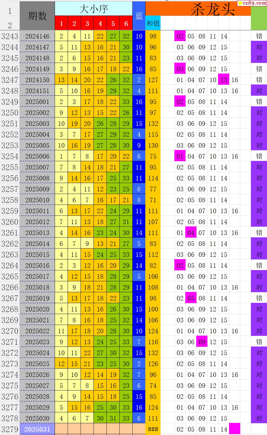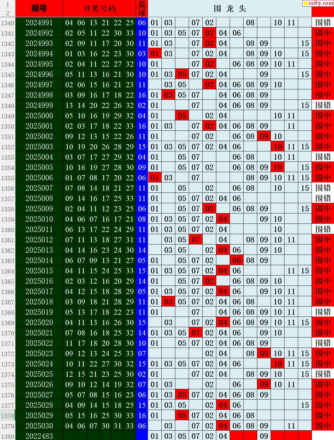 25年031期秋雨龙头凤尾走势图表