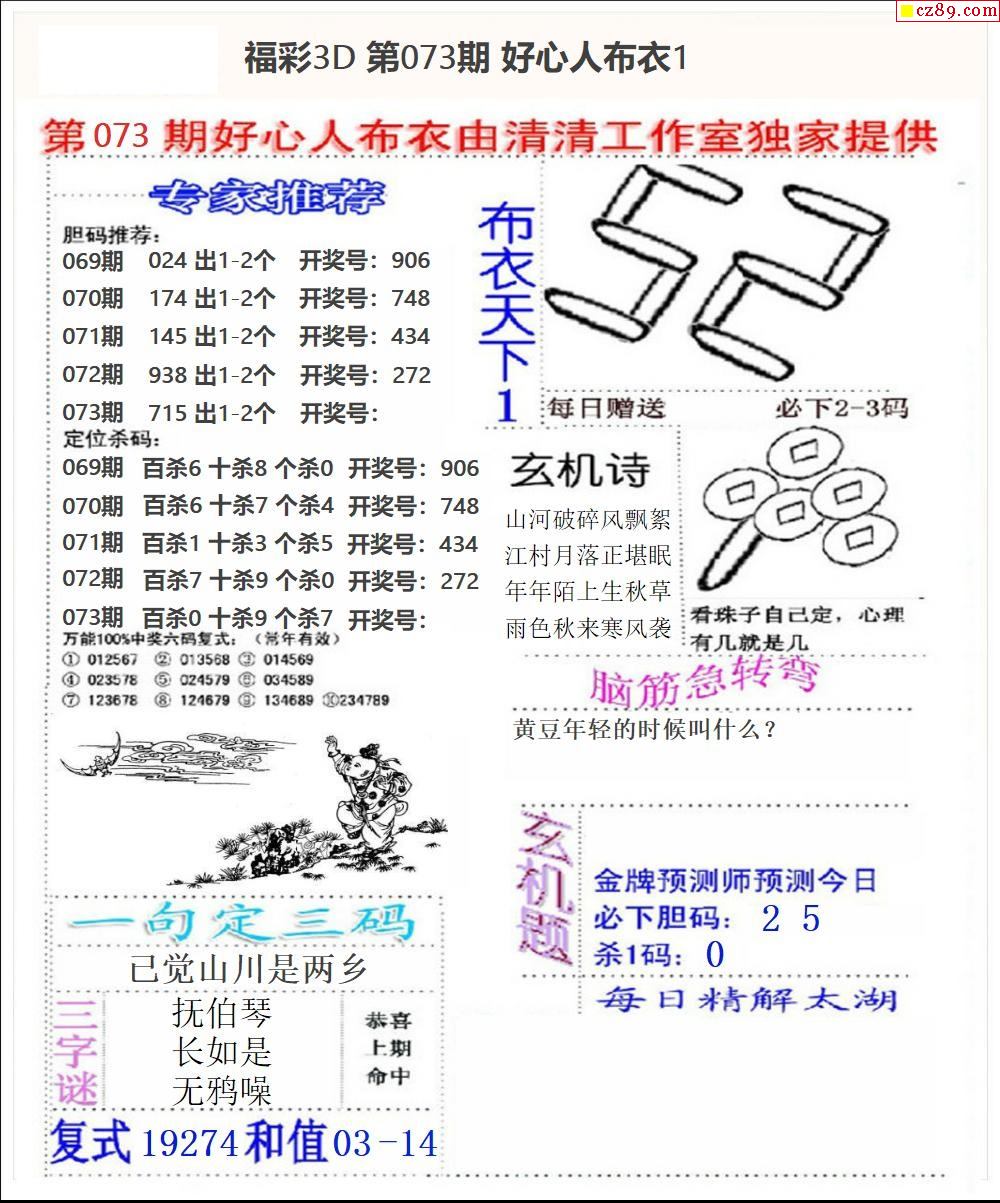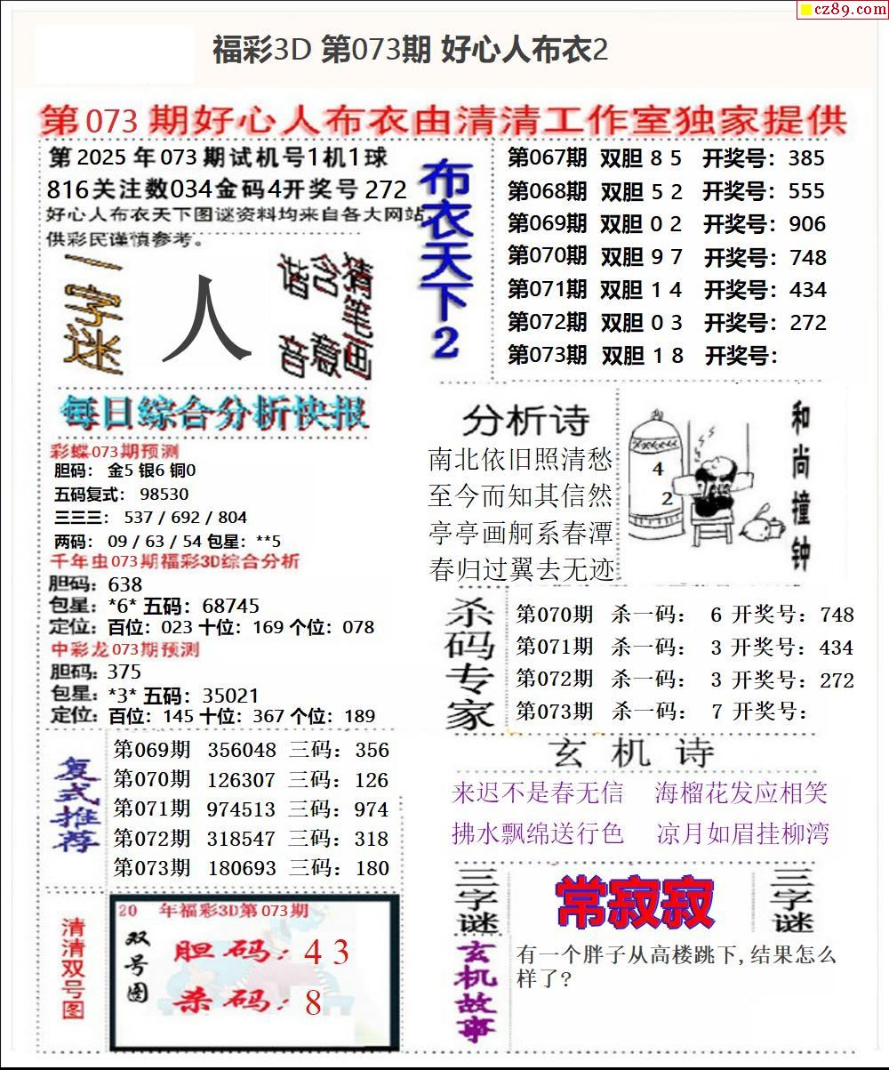 福彩3D2025330期 万家图谜三国胆拖杀图