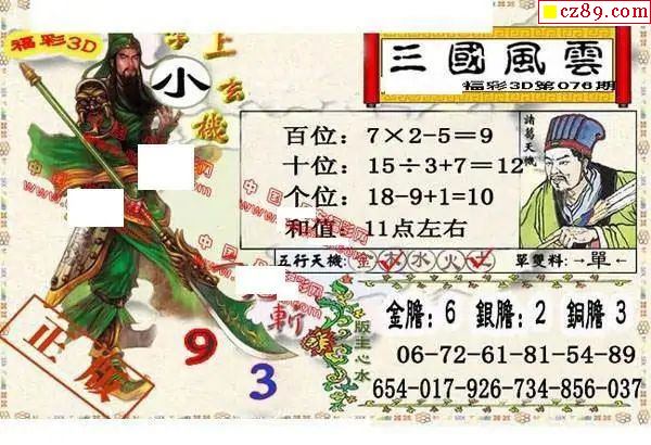 福彩3D2025329期 万家图谜三国胆拖杀图